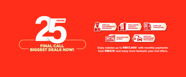 Final Call Biggest Deals Now! Enjoy rebates up to RM17,000* with monthly payments from RM478* and many more fantastic year end offers.